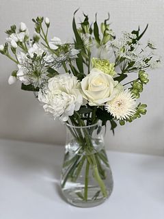 紹介の内容とはかなり違ってほぼ緑とハーブな感じが強いブーケでした… もう少しホワイトのお花も入ってくれたらより良かったです。