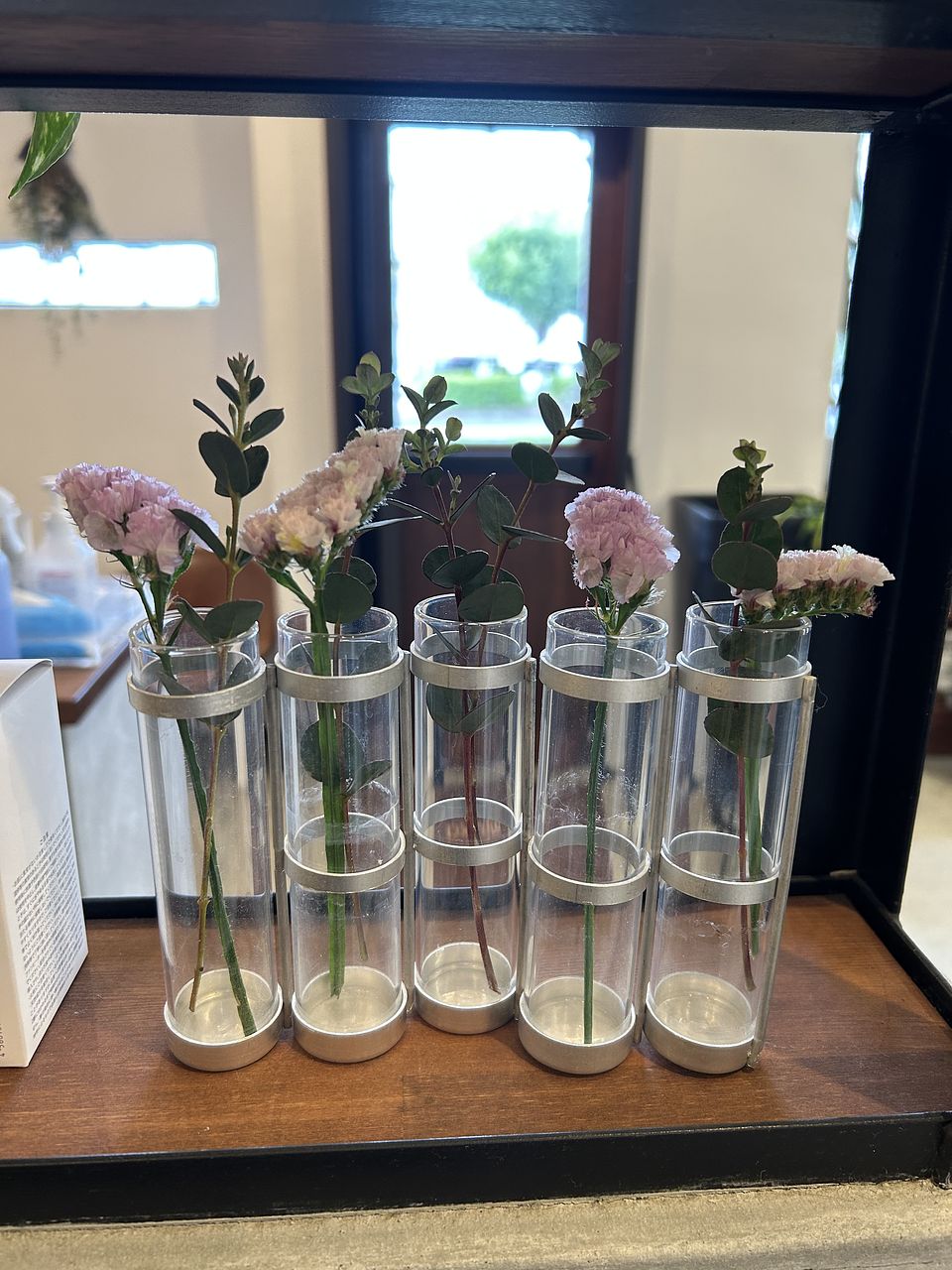 まず茎先をカットし、茎の7〜8割が浸かるイメージで深いお水に数時間つけてあげて。水圧で花に水が届きます。水揚げが完了したら、毎日のお世話は浅水〜中くらいの水量で。水換えはこまめにしてあげましょう。切花の栄養剤を使うと、バクテリアの増加を減らせるのでおすすめです。