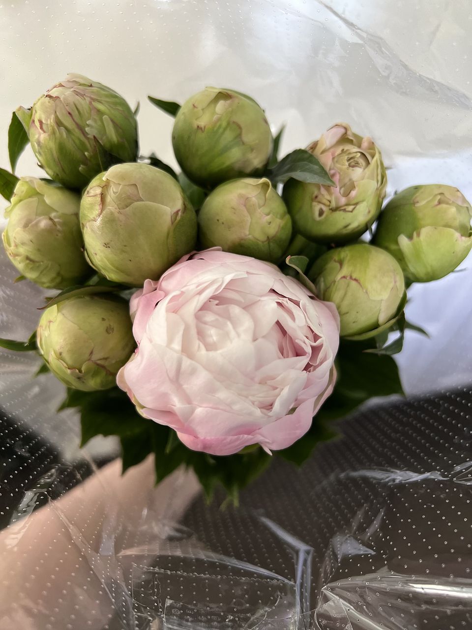 ミルキーピンクの芍薬を9〜10本贅沢に束ねました!
