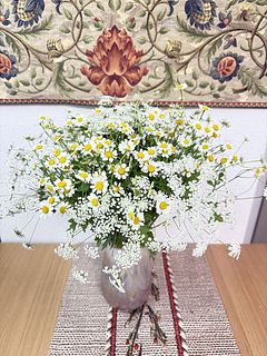 ふわふわゆれるマトリカリア「シングルペグモ」と「ホワイトレースフラワー」をたっぷり束ねました💐