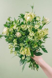 グリーンのバラ、「ミントティー」「スーパーグリーングリーン」「エクレール」「リューイーソー」などMIX束ねました。ちょっと珍しくて、個性的な春のグリーンのバラたちを楽しんで💚🫛