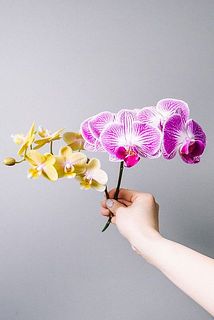 加藤洋ランさんのミディファレノをご用意しました😍他の花よりも持ちがよく、1本でもその存在感にうっとり。コチョウランの花言葉は「幸せが飛んでくる」🕊丁寧に栽培してくださった加藤洋ランさんのお花。是非最後まで楽しんで。