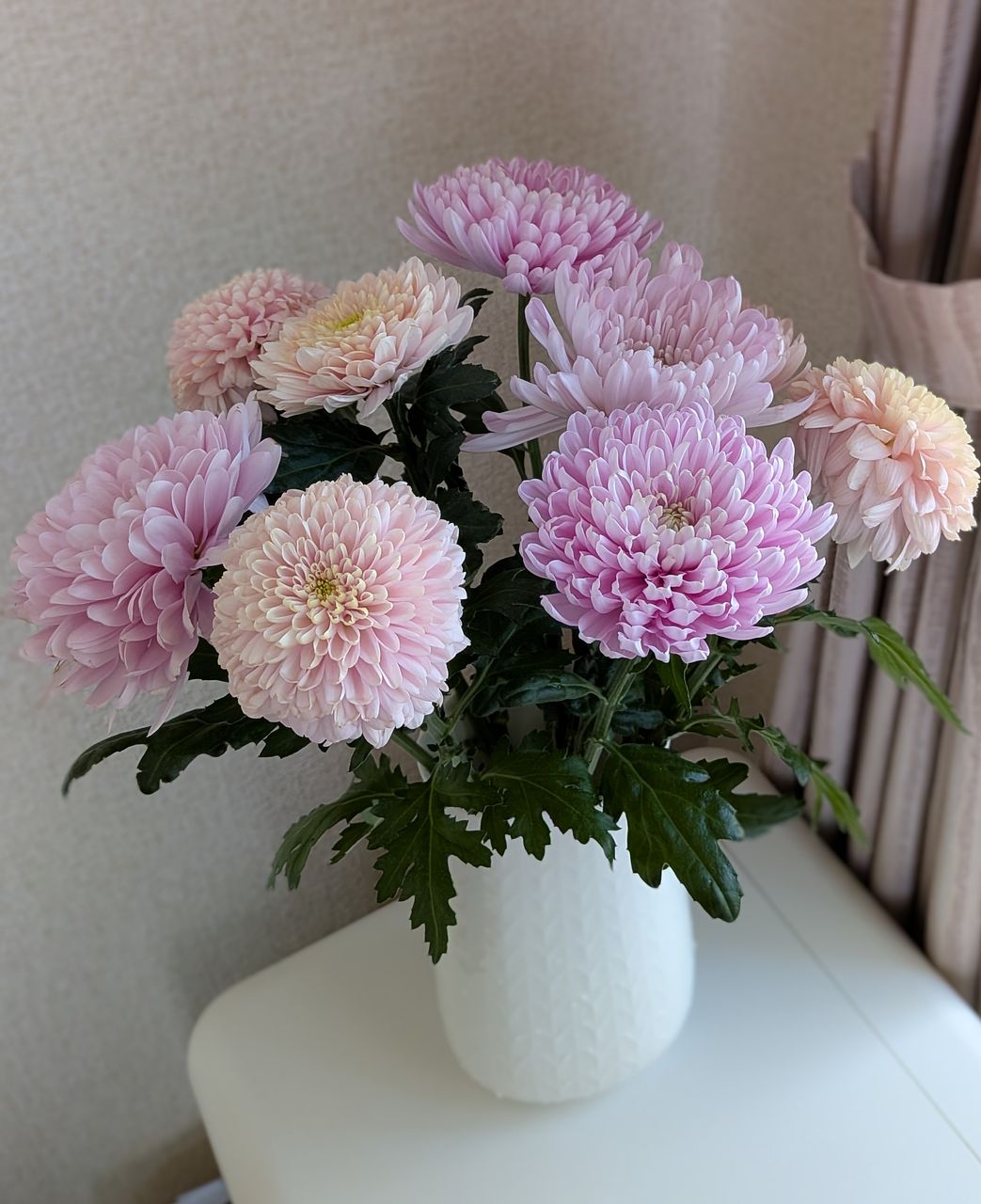 ころんと丸いフォルムと、幾重にも重なる花びらのやさしさも魅力です🤍