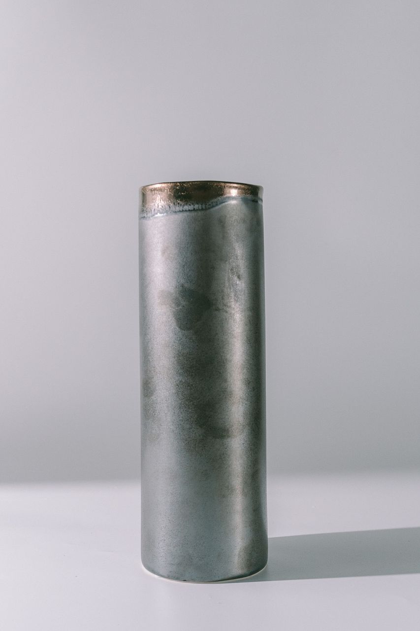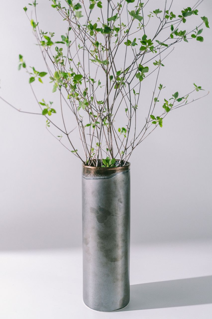さりげない色のゆらぎが、和陶器に見えたり、アイアンのような風合いを出してくれるので、和洋問わずセンス良く決まる花器です。