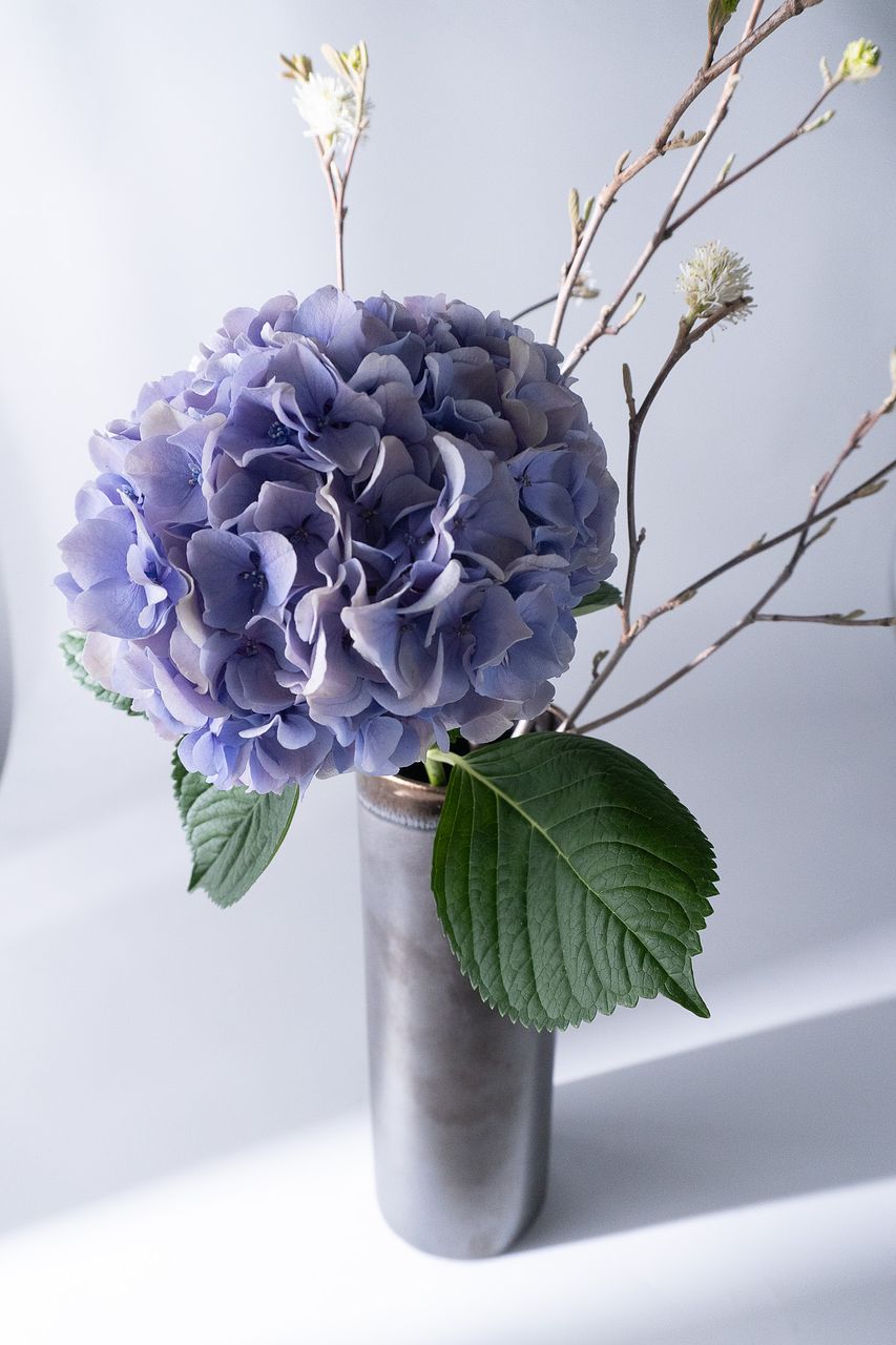 紫陽花と枝物の組み合わせも素敵。