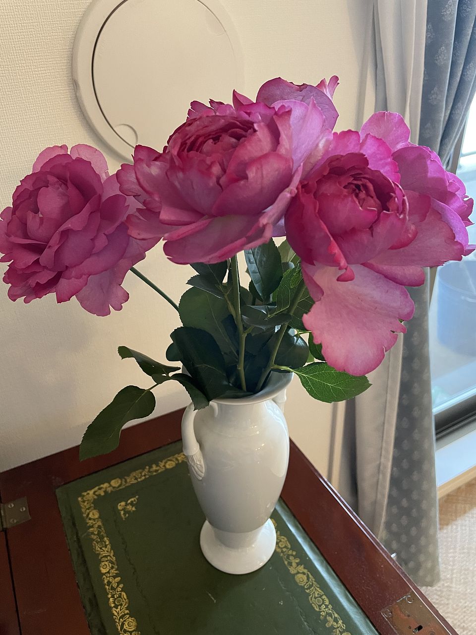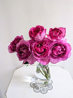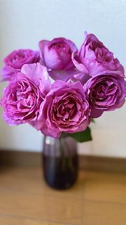 海外の薔薇園で出逢って、一番のお気に入りになった花です。開梱した途端に部屋に放たれた芳香にうっとり。水揚げも上手く行き、姿も香りも素晴らしいです。