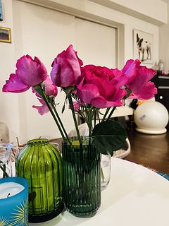 ただいま水揚げ中です。 とても綺麗な色と香りが大好きなバラなので、購入できて嬉しいです!