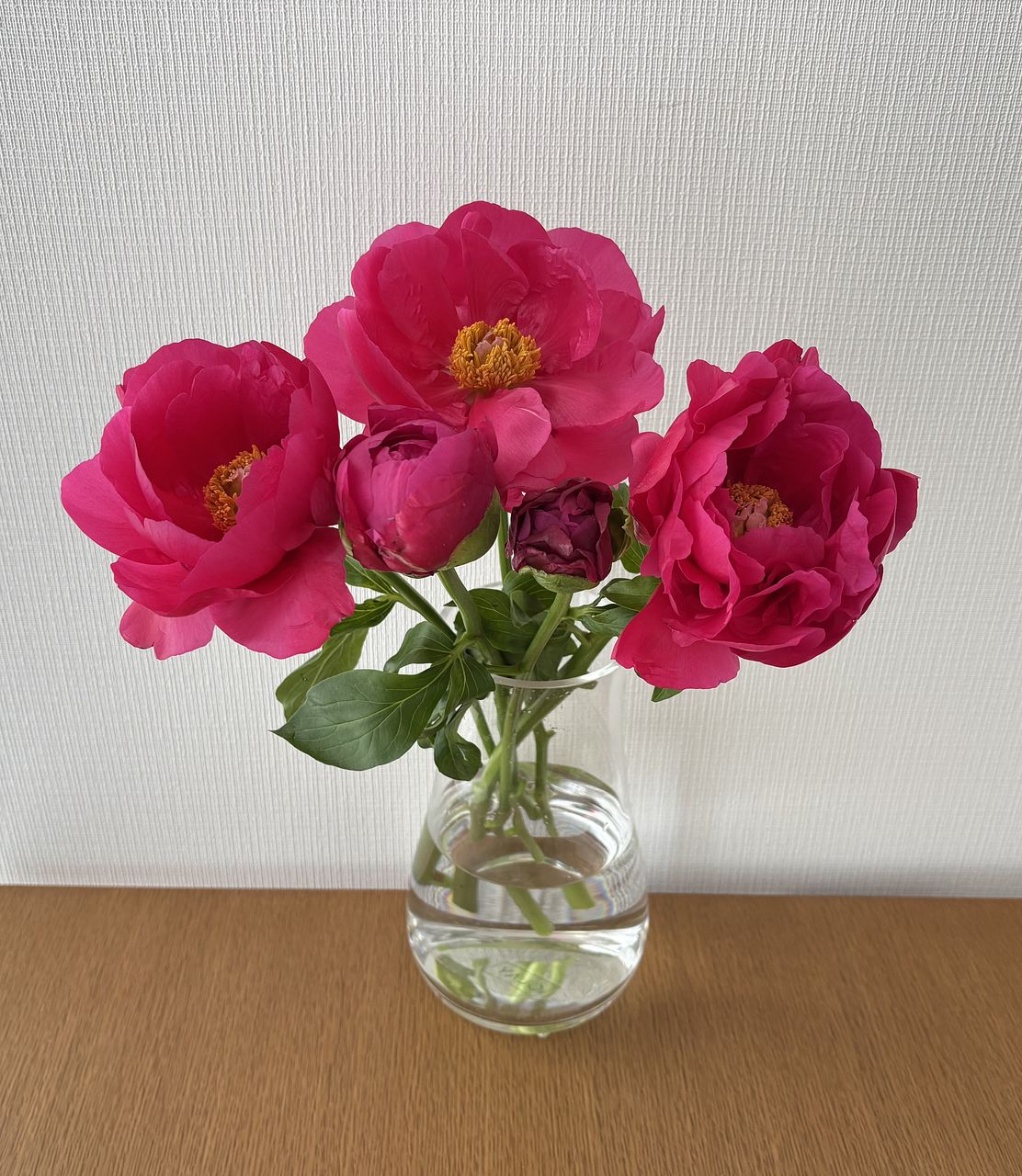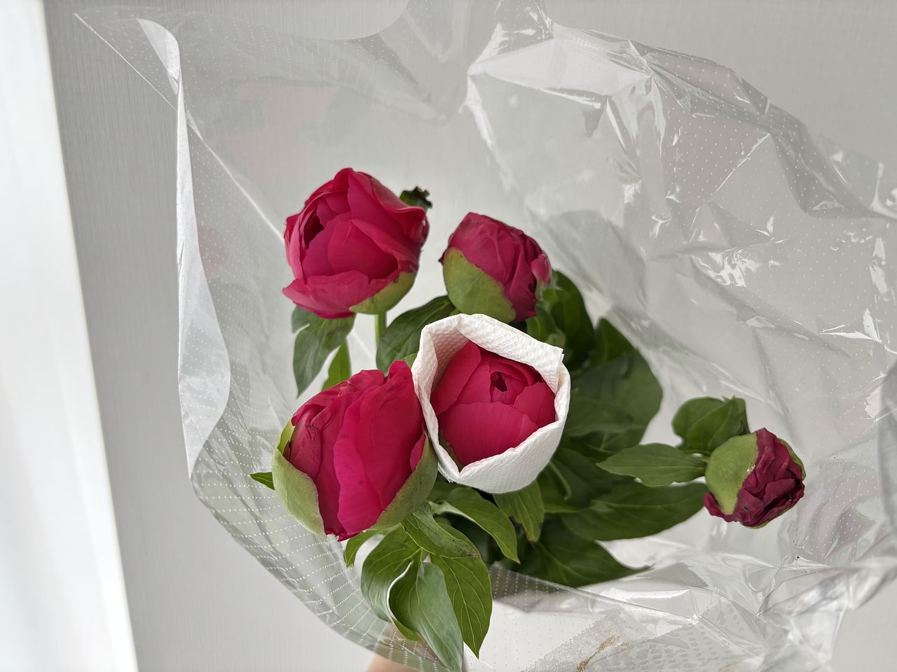 芍薬は、外側の花びらをめくってあげると咲きやすくなるそう。お試しを。