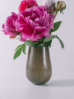 古典的な吹きガラスの製法で、職人の手によってひとつひとつ丁寧に仕上げられています。愛らしいぽってりとしたフォルムとカフェモカのような落ち着いた色合いで、お花と一緒にほっと一息つきたくなるかわいさ🐻