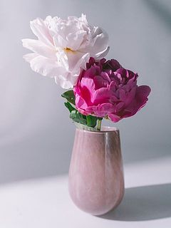 古典的な吹きガラスの製法で、職人の手によってひとつひとつ丁寧に仕上げられています。愛らしいぽってりとしたフォルムとくすみカラーのミルキーピンクのカラーリングがおしゃれ🎀