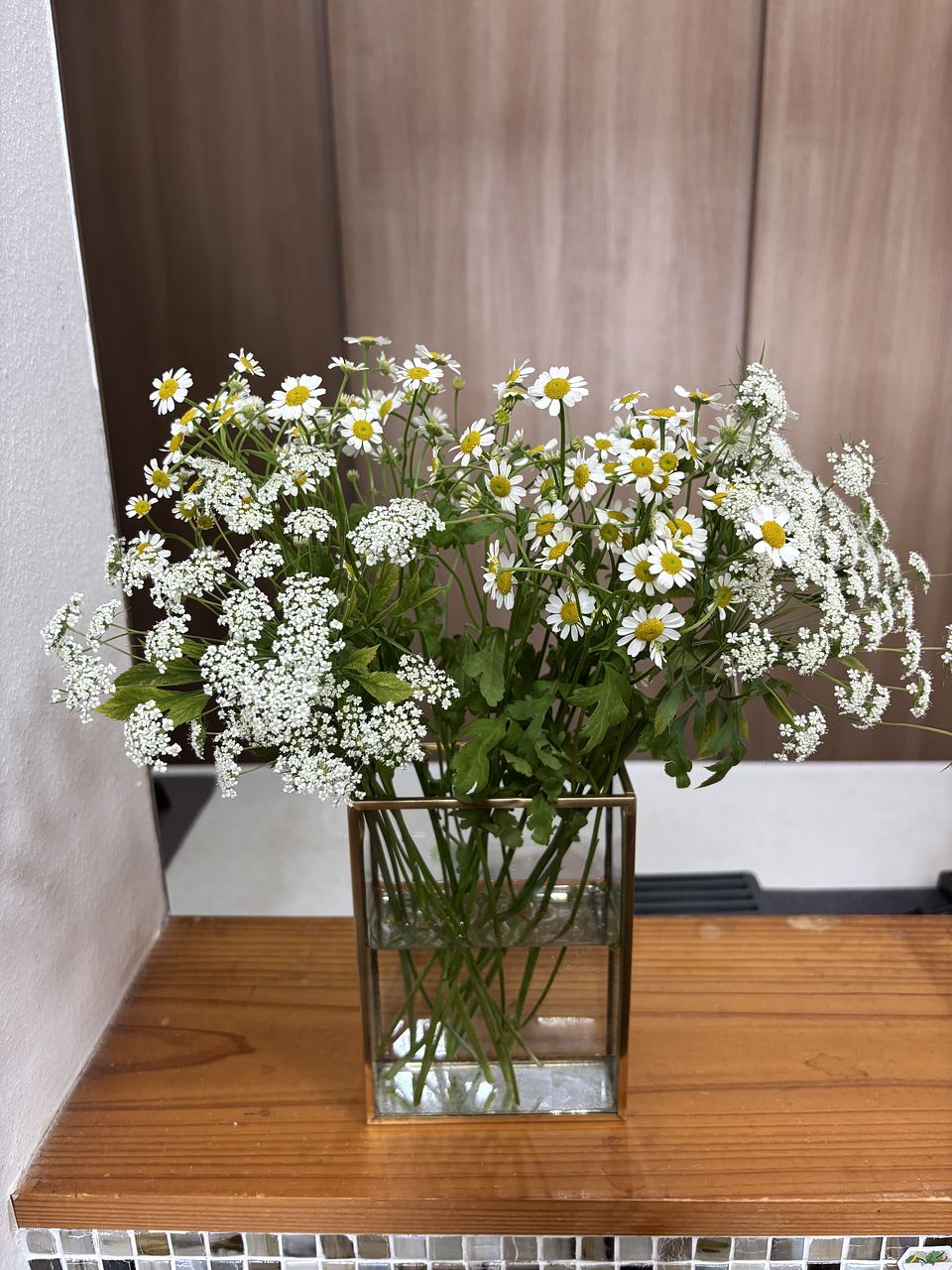 大好きなマトリカリアとレースフラワーだったので気持ちがあがりました🥰 状態も良くてリビングを明るくしてくれています。