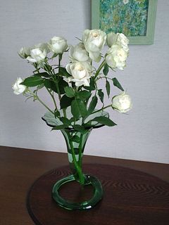 一輪挿しでも寂しくない。ボリュームは控えめでも存在感抜群。 葉花がとてもきれいで白が引き立つ。