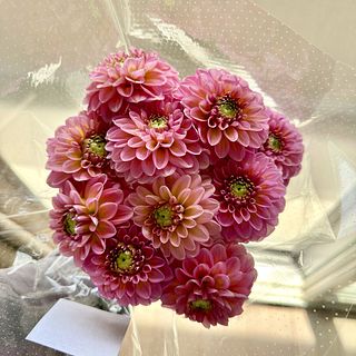 小輪のダリア「ホットピンクオセロ」をたっぷり10本お届け。