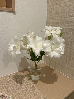 私が地元で百合を買うと10日以上は綺麗な状態を維持し、長持ちする。 今回のこの百合は1週間ほどで枯れ始めた。そういう品種なのか、案外早く枯れた。 長さが普段買う百合よりも短かく背の高い鉢の花器の中で酸欠状態になったのか? 匂いもナフタリンの匂いで、良い香りとは思わなかった。 花そのものは八重で珍しく楽しめた。 高さは記載が欲しかったのと、長めにして送って欲しい。
