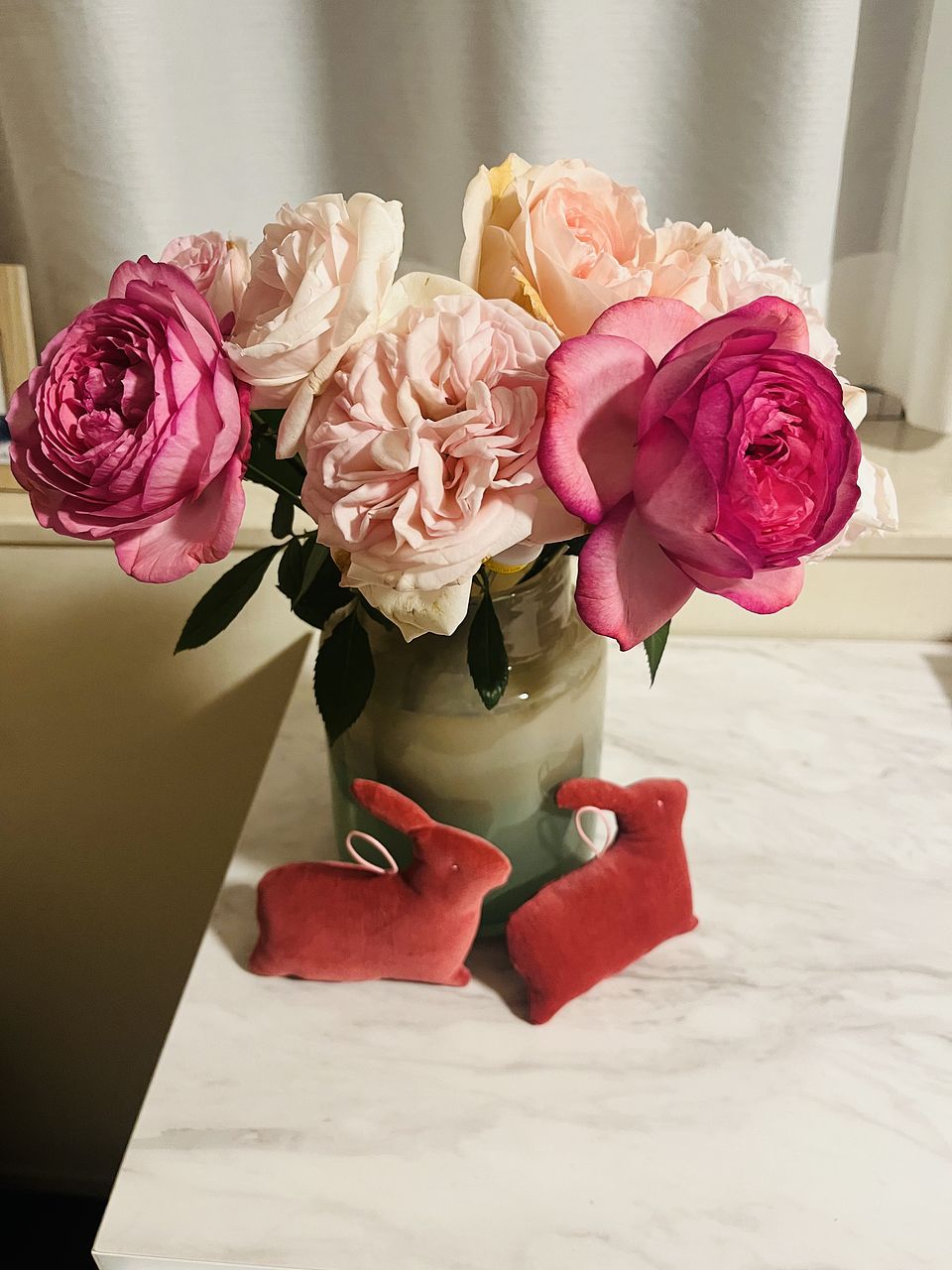 ずーーっと香りを楽しんでいたくなる、香り豊かなバラをたっぷりと。今回はピンク〜コーラルカラーの香りばらを集めたキュートなブーケ🎀