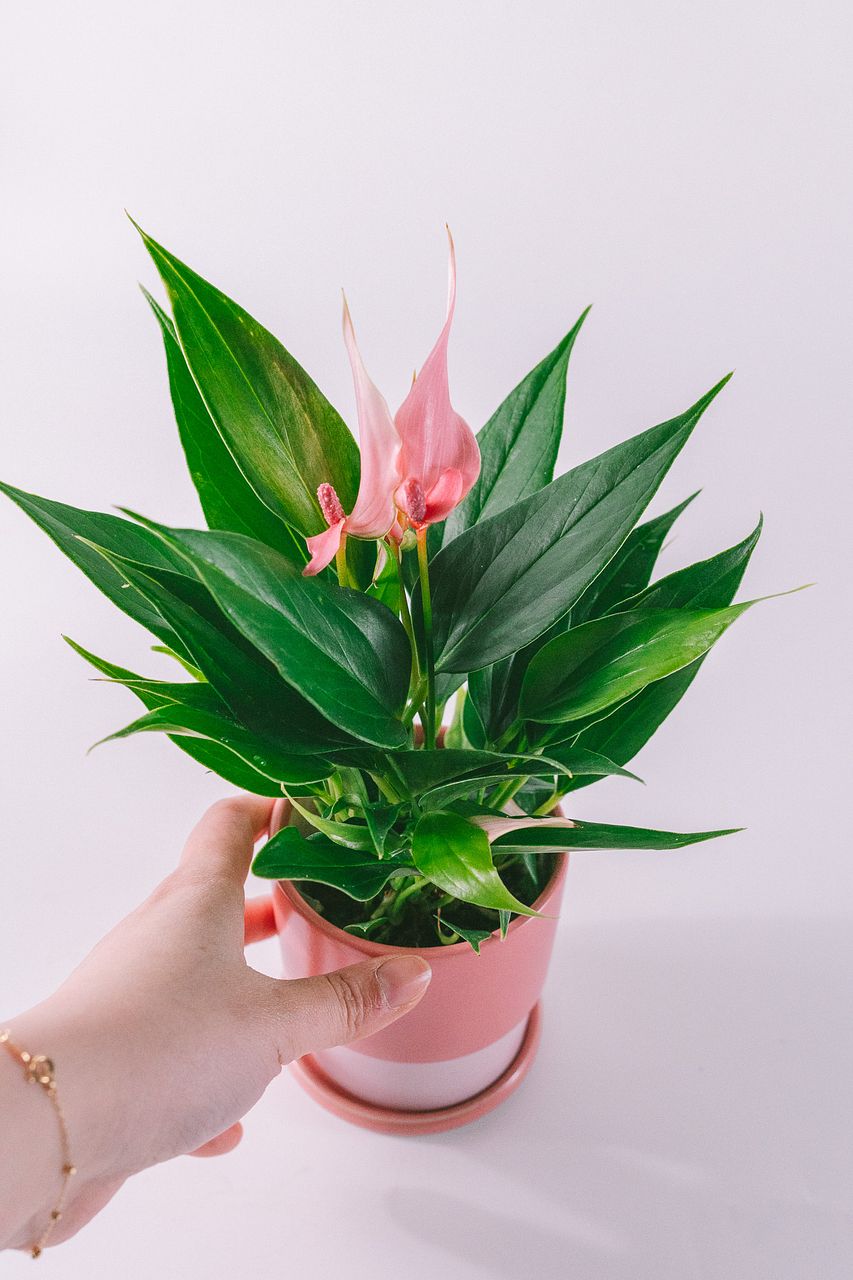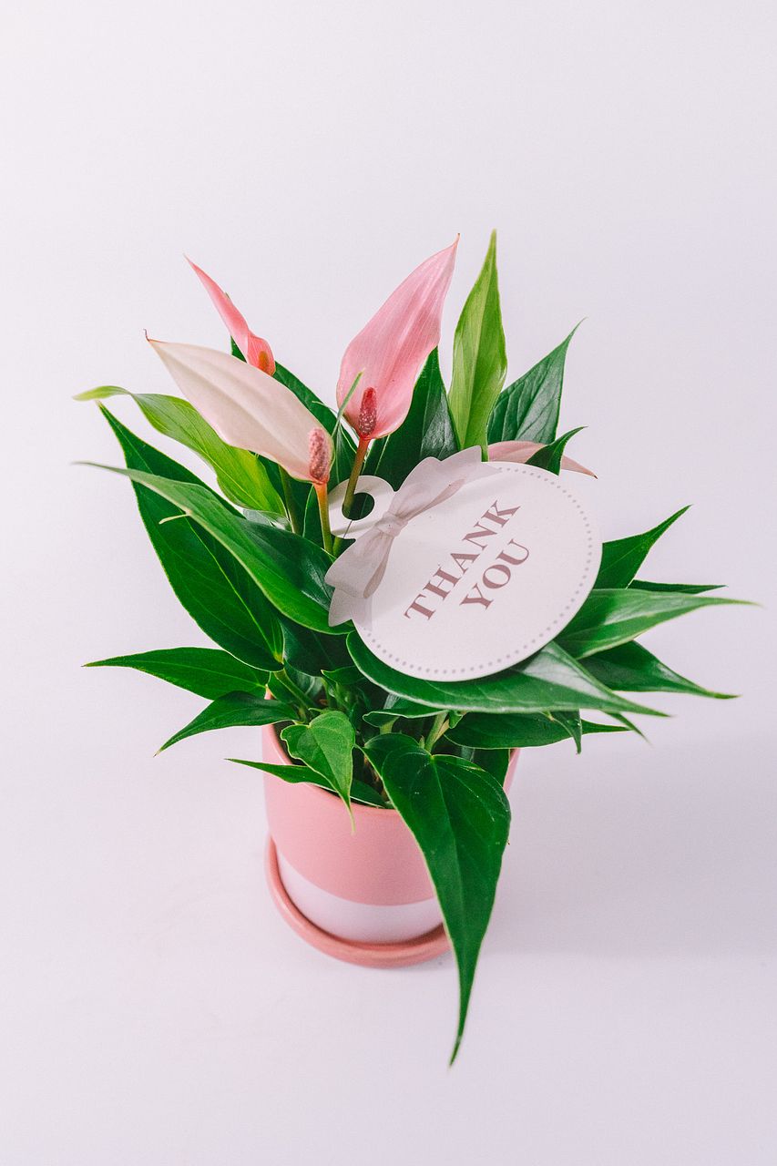 アンスリウムは最初はピンク色ですが少しずつ色が抜けていきます。アンスリウムは花が咲くとそこから長持ち。色が薄くなっていく間に、新しい花がまた咲いてきますのでしっかりお世話をしてみて。花言葉は「変わらない美しさ」。