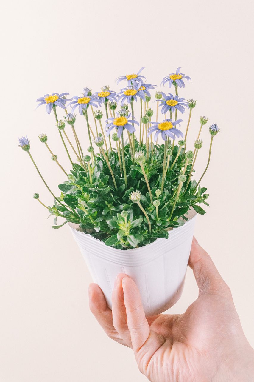 花咲くブルーデージーを2鉢お届けします。澄んだ青い花びらと、黄色い中心のコントラストがきれいな品種です。株元から次々に花が上がり、春〜初夏まで長く楽しめます🌼🩵鉢植えはもちろん、寄せ植えのアクセントにもおすすめです。