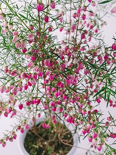 ピンクと白、2色の小さな花が鈴のように咲く愛らしいボロニア「ヘテロフィラ」✨