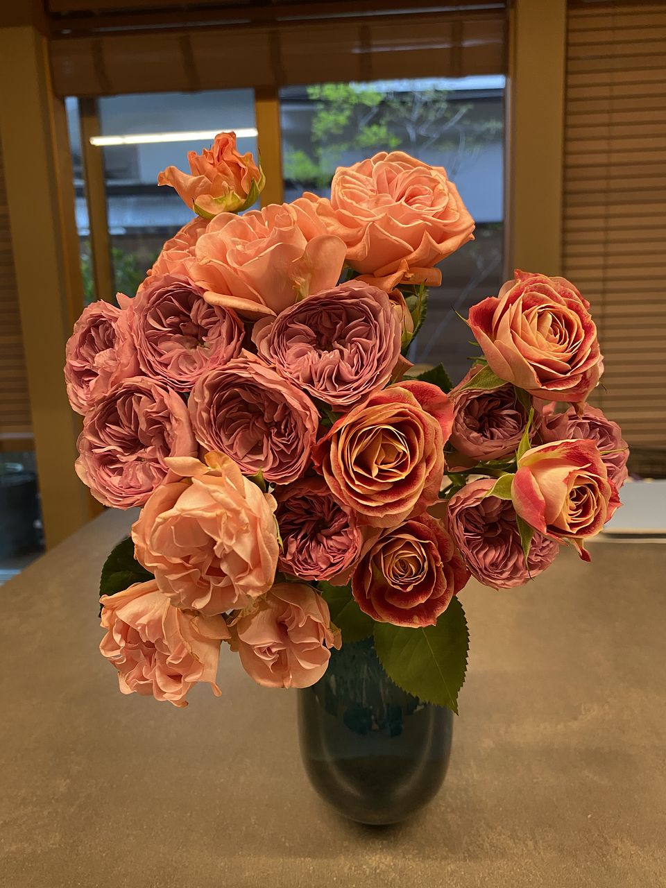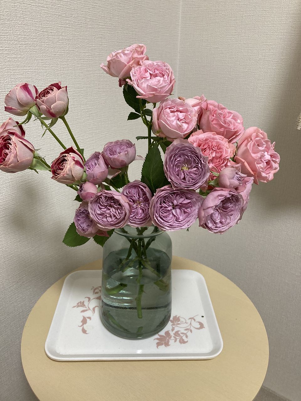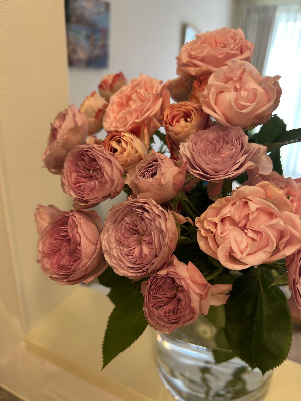 ふんわり香る薔薇の匂い🌹 優しい色に癒されます♪ もう少ししたら小分けにして あちらこちらに飾ってみても良いかも…(^^)
