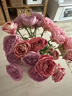 色々なピンクの素敵なバラが沢山届きました😀商品ページにあった通り1本から複数の花がついていたのでボリュームもありました。色も種類も私好みで毎日幸せな気持ちで過ごせそうです💕いつもありがとうございます😀