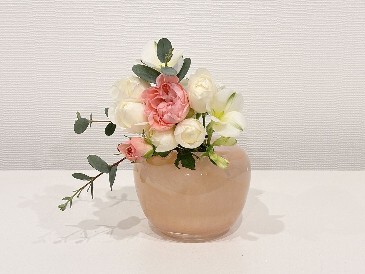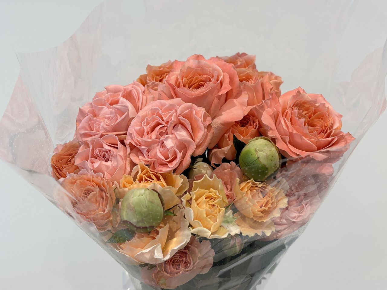 甘いピーチミルクのようなカラーリングの芍薬とバラを贅沢に束ねました🍑🐮