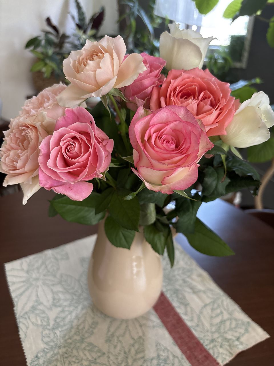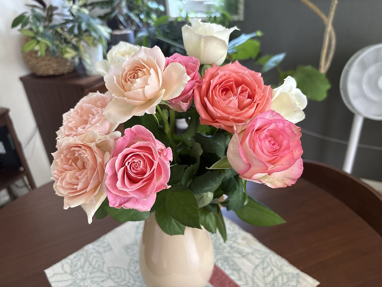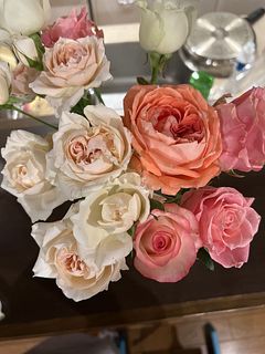 バラだけなのにそれぞれ違う表情が楽しめ、優しい色合いは家族にも好評でした。 香りの強い種類が数本、いいバランスで入っていました。