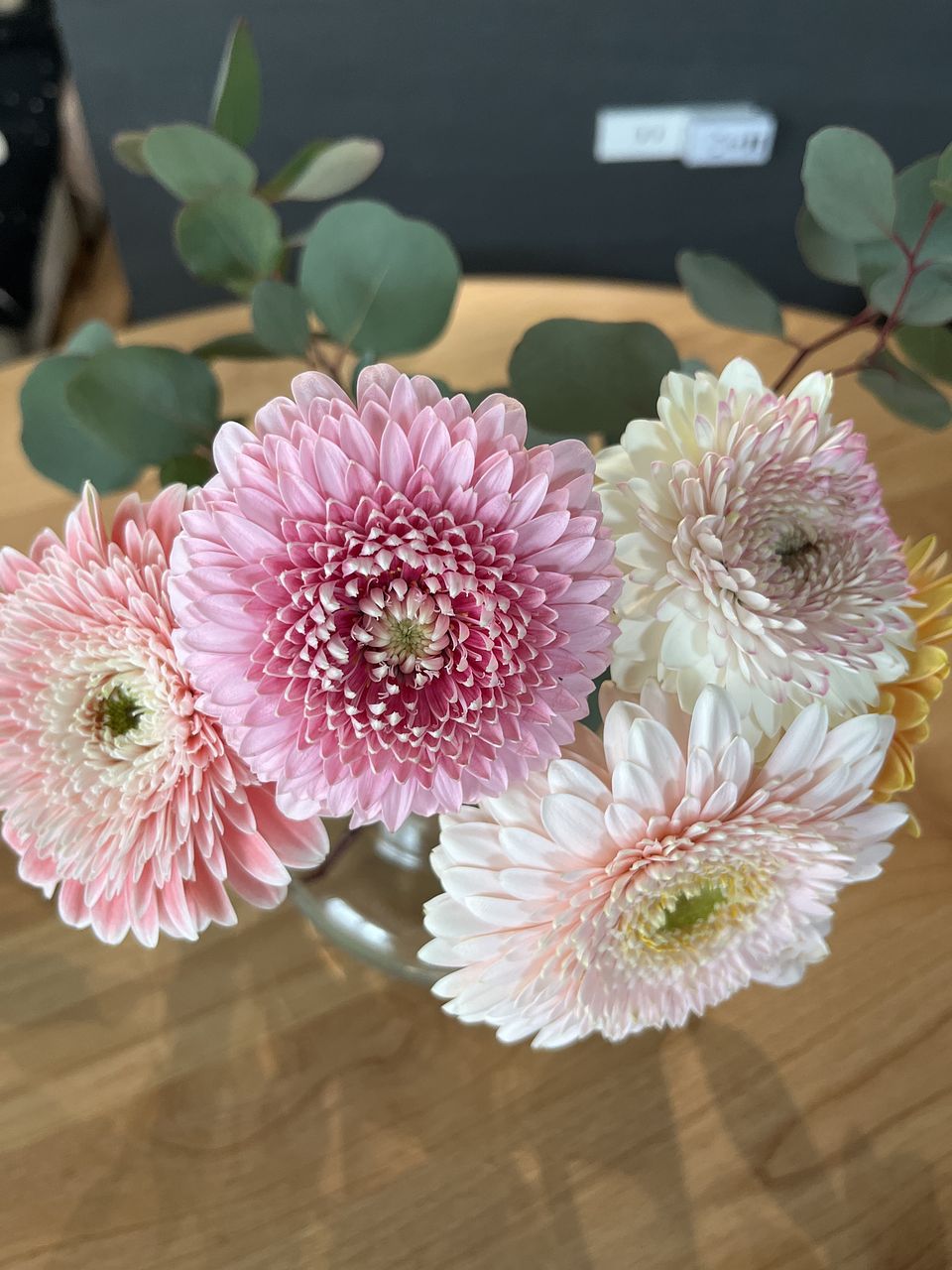 アプリコットピンクやコーラルピンク、ホワイトピンクなどニュアンスカラーのガーベラをギュッと束ねました🍑ころんとした咲き方が最高にキュート。