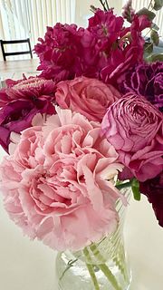 2束セットというのもありボリュームたっぷりでお色も鮮やかなピンクで大満足です。 素人ですが好き勝手に生けました。 幸せな一日でした。 長持ちさせます。 また宜しくお願いします。