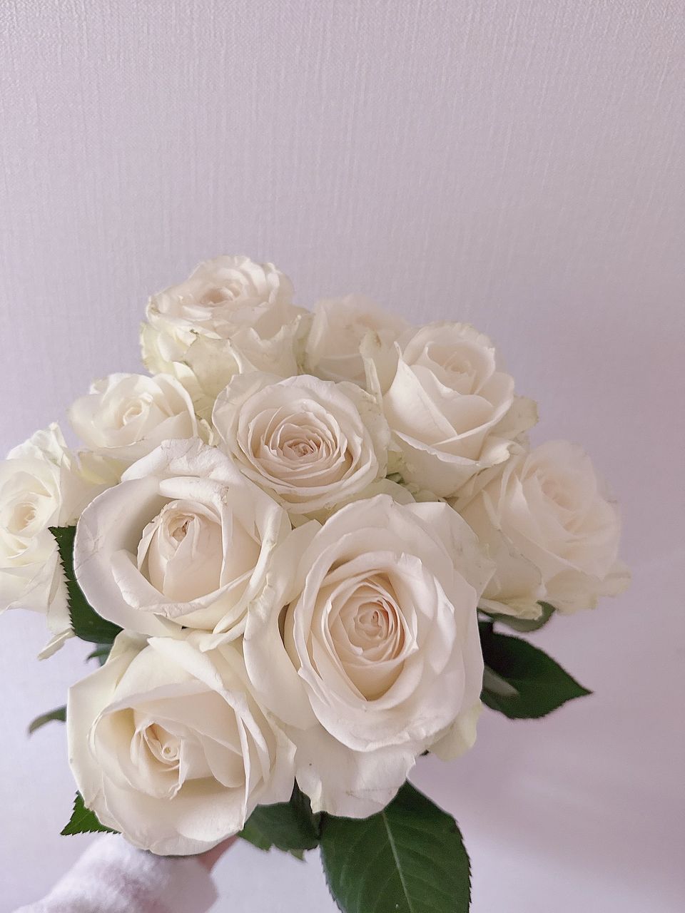 ホワイトのバラ「アバランチェ」をたっぷり9〜10本お届けします🤍