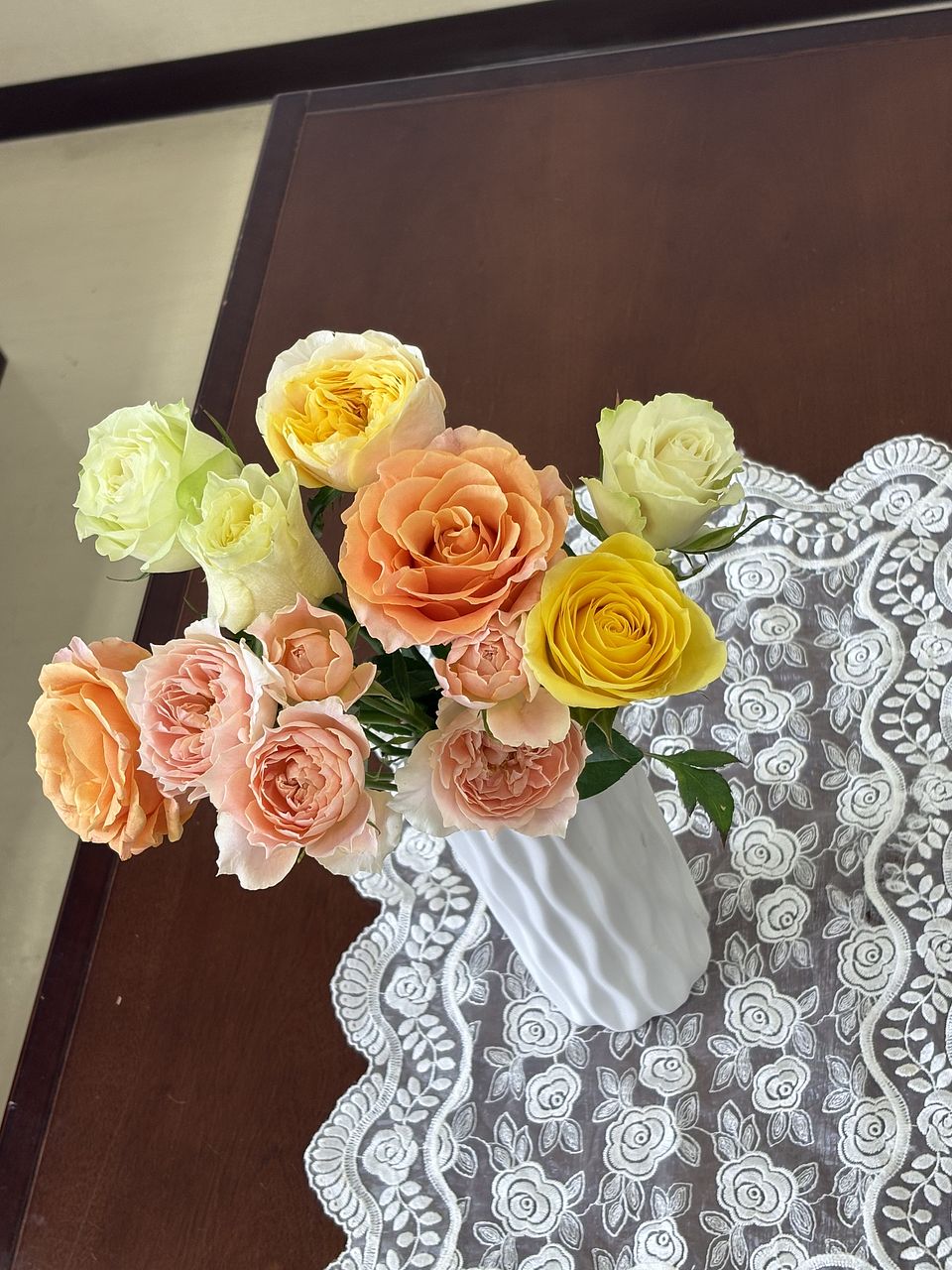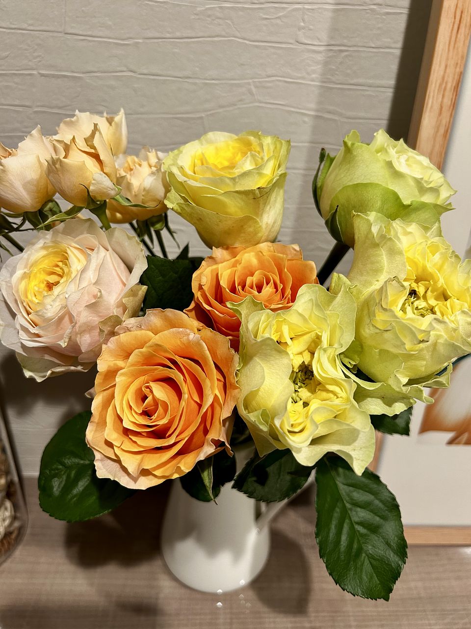 様々な白からピンクオレンジ系のバラが届きました。 香りはあまりしませんでしたが、春の日差しのような色合いに満足です。