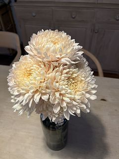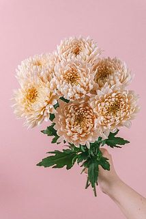 ふわふわな姿がたまらない🦩ミルキーベージュの大輪マム「シルキーガール」。