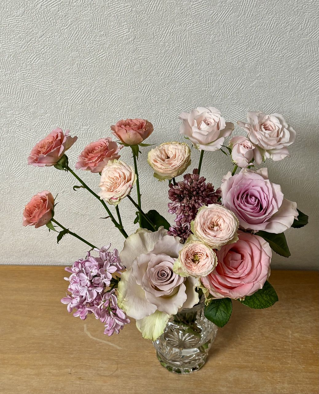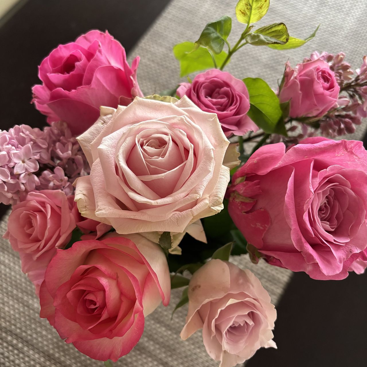 とてもピンクのグラデーションがきれいな 色んな種類のバラでした! ライラックもとてもかわいい! 大満足です!