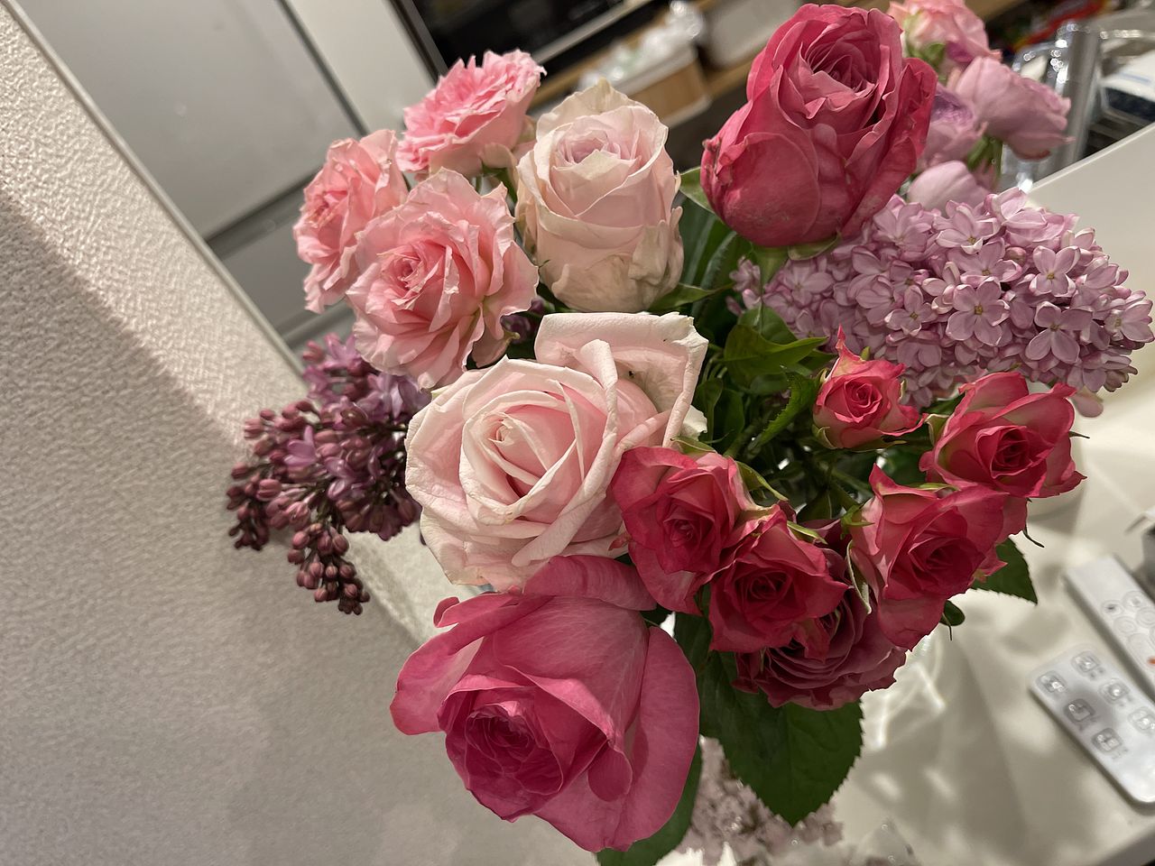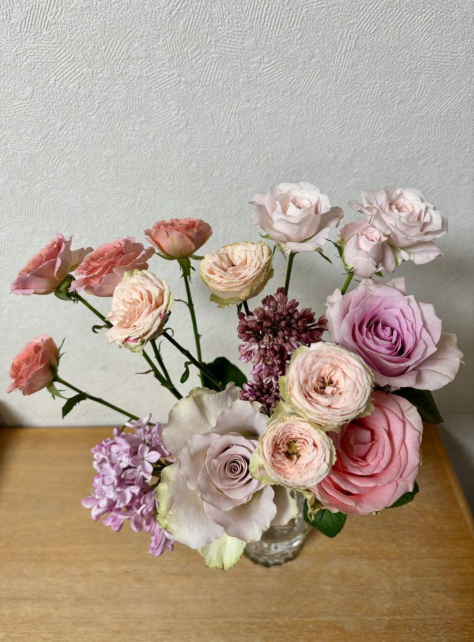 綺麗なバラとライラックでした。本当に華やかで気分も明るくなりました。