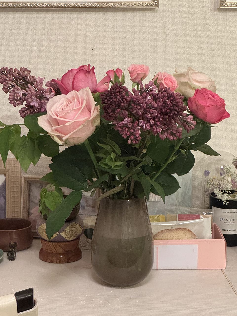 大好きなライラックと可愛い薔薇がボリュームたっぷりで届けられ嬉しかったです💜🩷