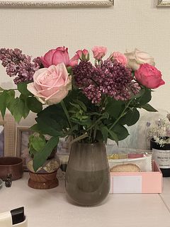 とっても素敵なお花でした✨ライラックは小さめ2本でしたが、バラのボリュームでゴージャスです。高価なライラック込みでもこのお手頃価格、企業努力を感じます。いつもありがとうございます😊