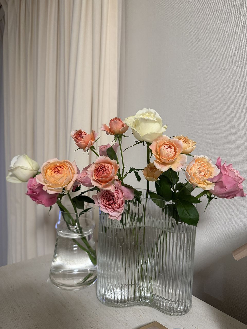可愛らしい色味❣️ いつもより少し花びらが痛んでいましたが、小ぶりのローズですが水あげしたら元気になってくれました❣️