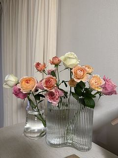 バラだけなのにそれぞれ違う表情が楽しめ、優しい色合いは家族にも好評でした。 香りの強い種類が数本、いいバランスで入っていました。