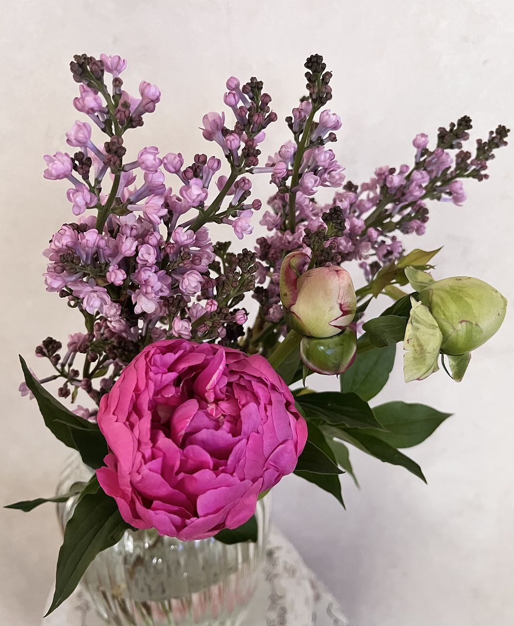 ライラックの花言葉は「恋の芽生え」、芍薬の花言葉は「はじらい」「はにかみ」☺️