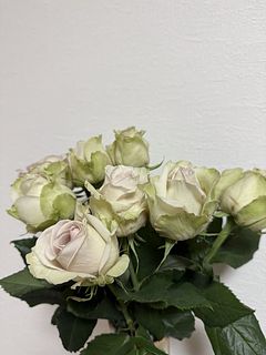 ボリューミーで可愛らしいお花たちが届きました。 色味は外側が緑っぽくて、中はくすみピンクで落ち着いた雰囲気です。 やや外側に傷?のようなものがついていましたが、全体的に状態はいいと思いました。
