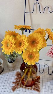 幸運を運ぶ、黄色いガーベラを束ねて🌼