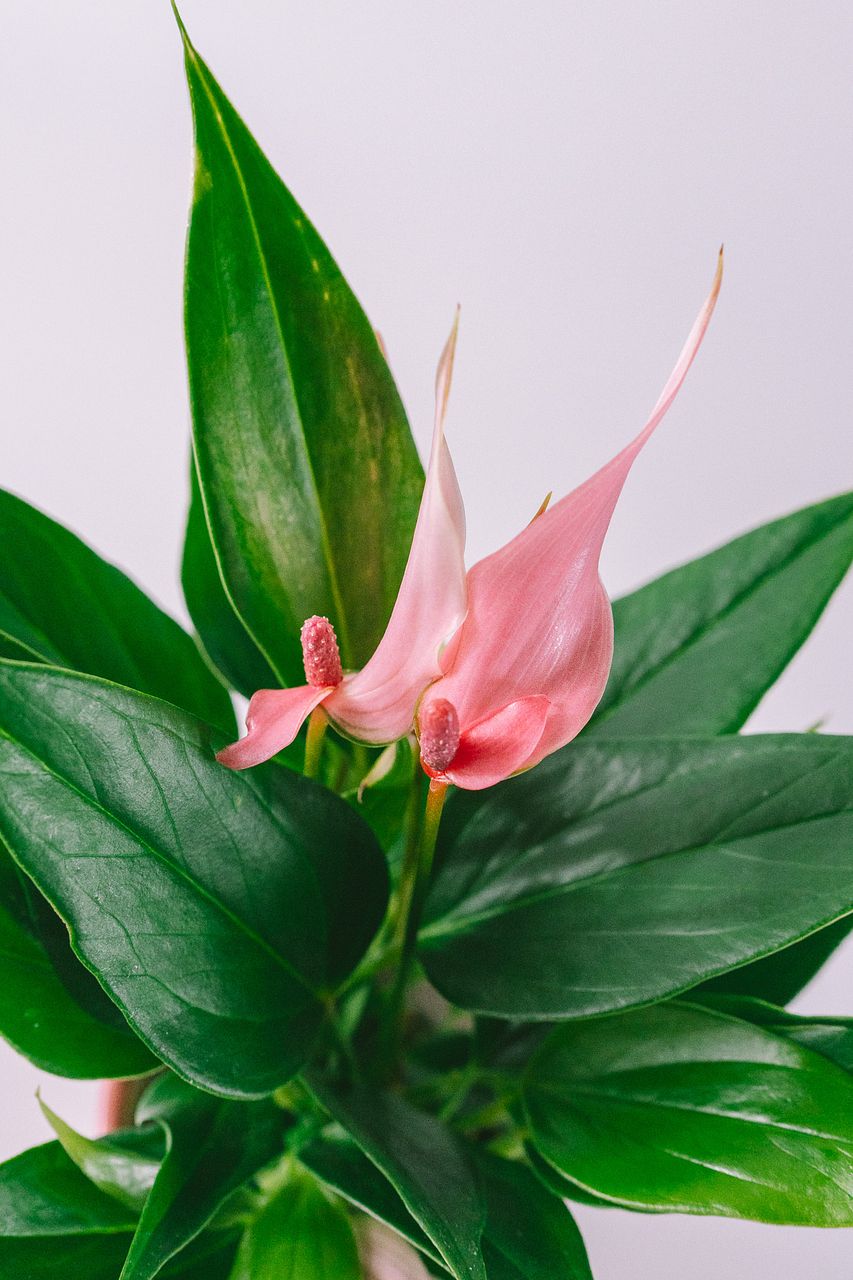 アンスリウムは最初はピンク色ですが少しずつ色が抜けていきます。アンスリウムは花が咲くとそこから長持ち。色が薄くなっていく間に、新しい花がまた咲いてきますのでしっかりお世話をしてみて。