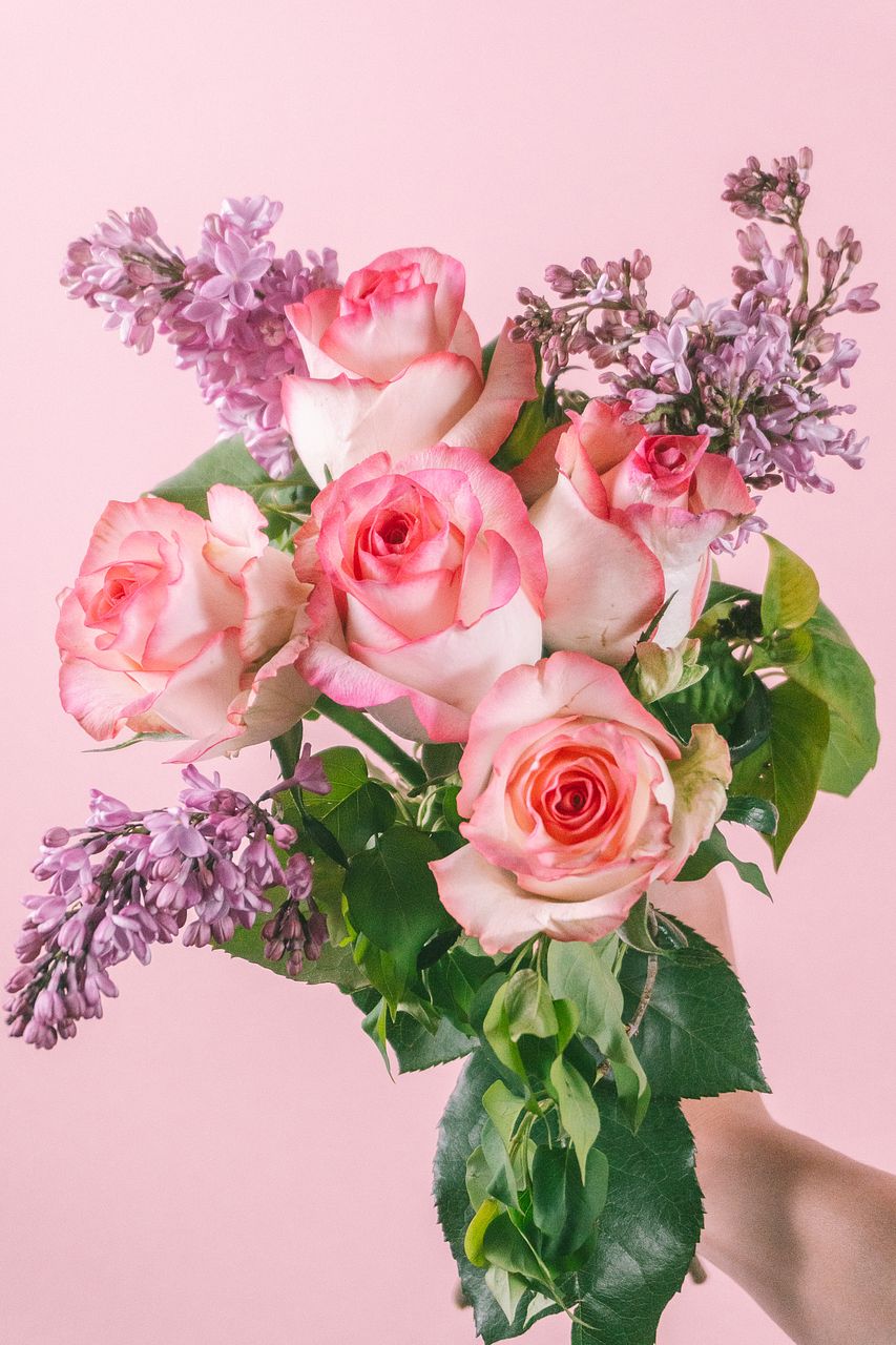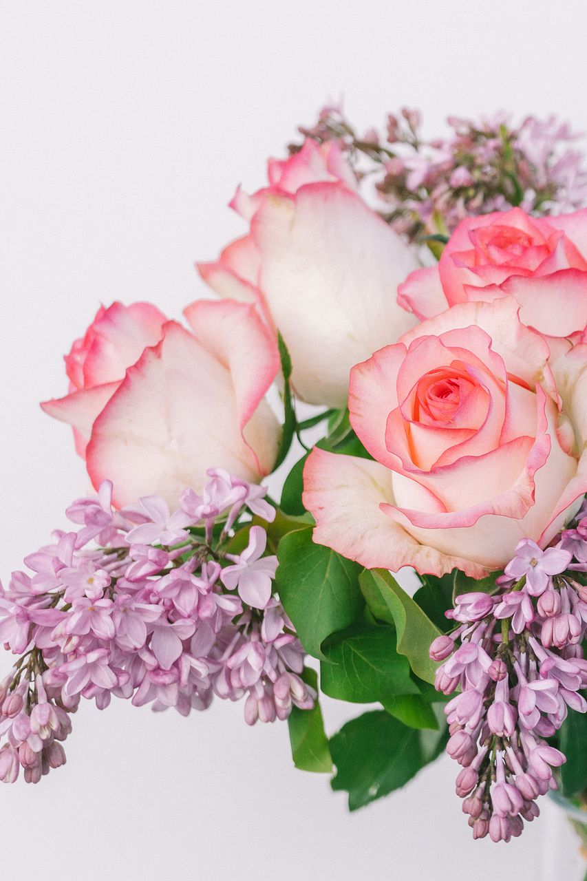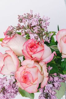 丸みのあるバラと、小花が連なるライラックの組み合わせが魅力的💞