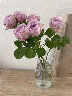 繊細なライラック色のバラが素晴らしく健康な状態で届きました!なんと美しい!そして上品!傷一つなく本当に感動的です。また頼みたいです。
