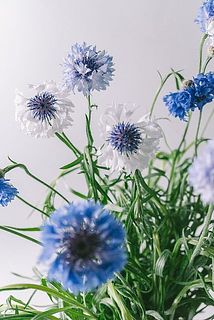 花言葉には、「優美」「教育」。かつて、ドイツのルイーゼ王妃は、麦畑にたくさん咲いていたヤグルマギクで花冠を作って、子供たちに元気と勇気を与え、逆境に負けず希望を持つように諭した、というエピソードが由来となっています。