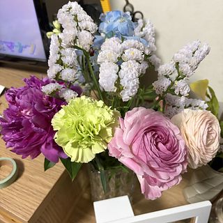 今日もいいことがありますように。そんな気持ちを込めて、ちょっぴりお得なおまかせブーケをご用意しました。