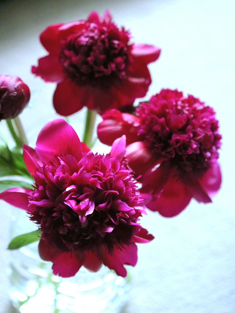 2本はもう直ぐ全開間近、あとの2本も日をずらして咲きそうでちょうど、大きさの変化があり雰囲気のある生け方が出来そうです。花びらも綺麗で色もとても深みがあり素敵な芍薬を送っていただき感謝しています。ありがとうございました!!