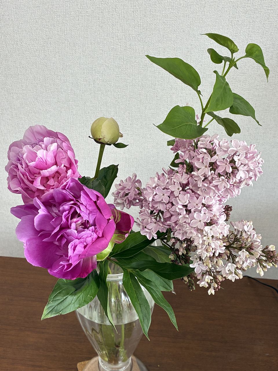 好きなお花の組み合わせです。 ライラックの水揚げが上手くいきますように。