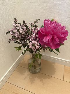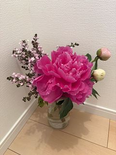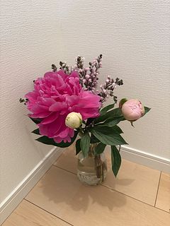 写真のようなボリュームはなく、ピオニー3本、ライラック2本。ピオニーは1本開きかけ 2本は固めの蕾でした。飾りたい日当日着だったため華やかさに欠けましたが、次回は必要な日の2日前に届くように準備します。ライラックはすぐ枯れてしまい、ピオニーは5日経過した今日もまだ元気です。