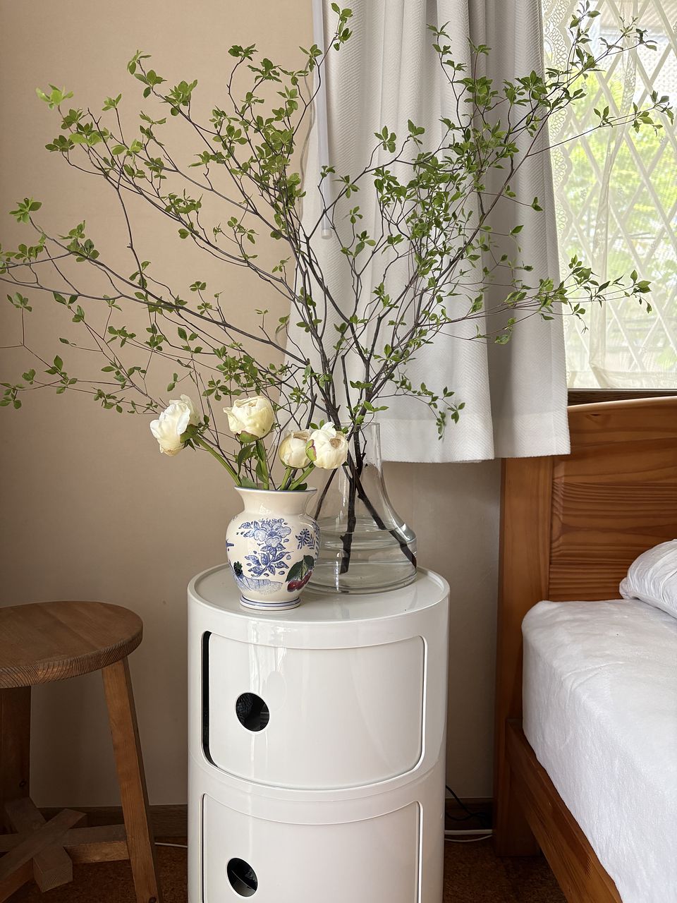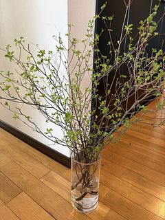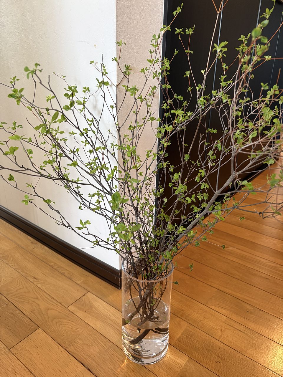 どんな枝がくるのかな?とワクワクしていました♡開けて、広げて、どうフラワーベースに入れようか、、、でも、考えなくても素敵な枝ぶりでした~✨急に暑くなり💦長く楽しめますように。水換えなど、ドキドキしていますが、頑張りたいです