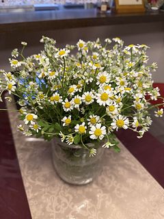 飾るときのポイントは、マトリカリアの下葉を少し取り、空気が通るようなイメージでやさしくほぐしながら広げるのがおすすめ。